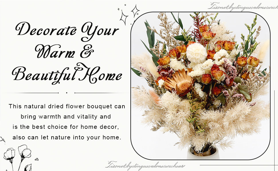 【Great Gift Choice】: Dried flowers bouquet decor has made a big comeback in recent years as a way to connect with nature. The beautiful dried flowers are perfect gift for your mom,wife,daughter to show your unique love.