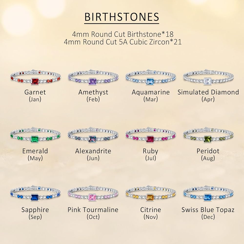 Comfortable Fit: The birthstone bracelet measures 7" (17.78 cm) in length and approximately 4 mm in width, secured with a sturdy spring clasp for both comfort and safety.