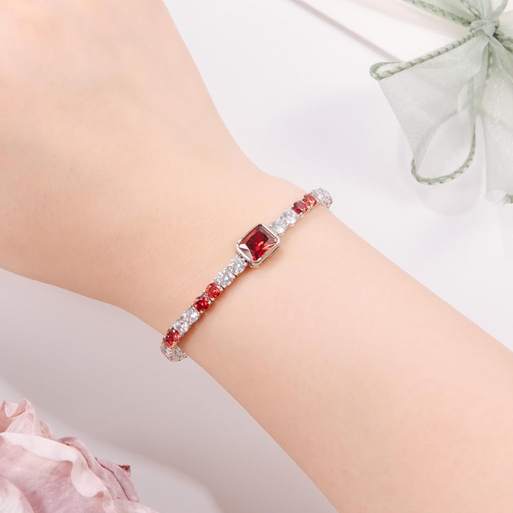 Birthstone Bracelets for Women Birthday Gifts 4CT Radiant Cut Birthstone 4mm Sterling Silver White Gold Tennis Bracelets for Women Round Cut 5A Cubic Zirconia Bezel Setting 7 Inch