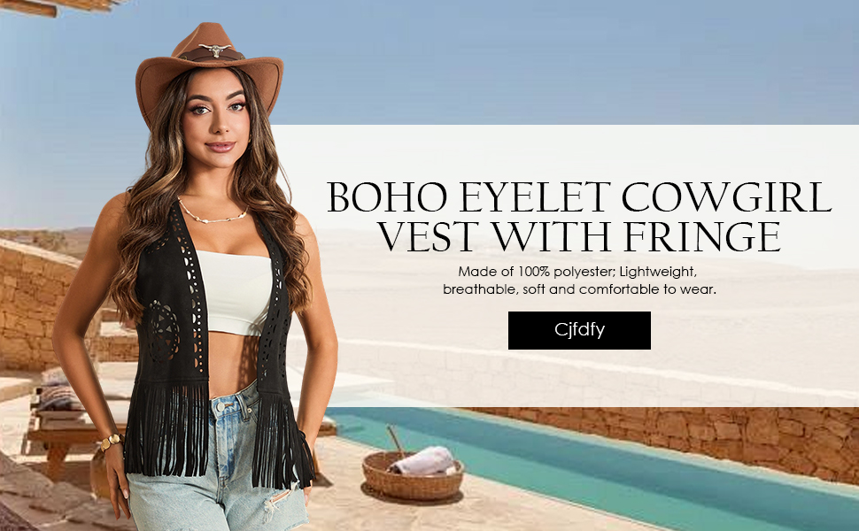 MATERIAL: Western fringe vest for women cowgirl is made of 100% polyester; Lightweight, breathable, soft and comfortable to wear