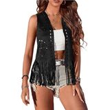 SIZE: S,M,L,XL,XXL. Western vest women, cowgirl fringe vest top, lightweight summer&fall&spring casual outwear vest jacket; Stylish and chic