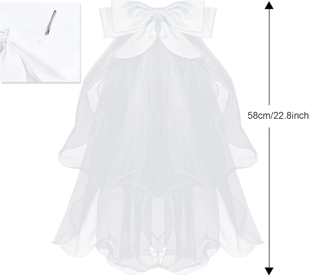 Wedding Party Decorations Women: The ribbon bow veil is attached to a durable, discreet clip for a secure hold that stays in place through the ceremony and reception. Its versatile design pairs beautifully with various hairstyles, from updos to loose curls