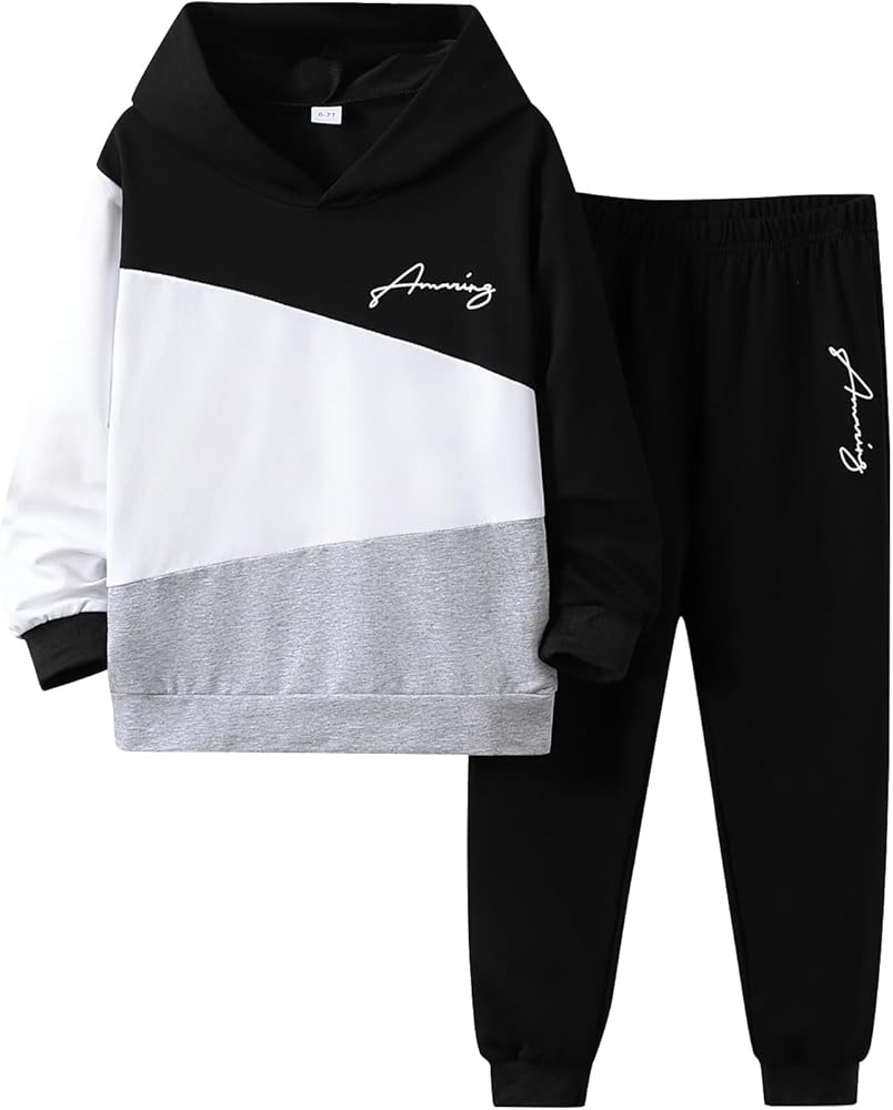 Value set with multiple size options: The set includes a hooded long sleeved top and a pair of pants, suitable for daily wear by boys aged 6-12.