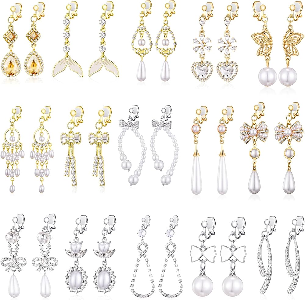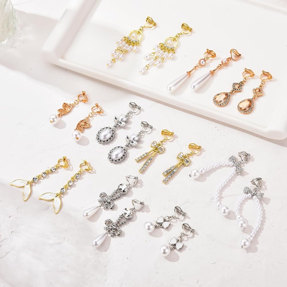Statement Earrings : Price for 15 pairs Non Piercing Earrings Set in all. You will get 15 models with silver tone at a time.So many different options.Bring you a wonderful life