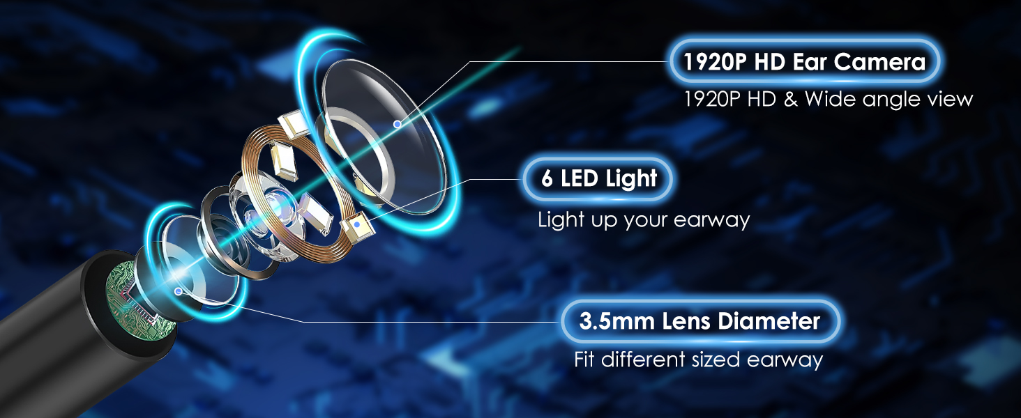 Intelligent Temperature Control & 3-Axis Gyroscope & IP67 Waterproof :Designed with IP67 waterproof protection, the ear camera 360° Wide Angle lens can be easily cleaned with water or alcohol, ensuring long-term hygiene and durability. The 3-axis gyroscope sensor instantly corrects for hand tremors, ensuring a stable picture and a smooth, professional-grade operating experience.Automatic temperature control maintains the handle at 32°C and the tip at 28°C. Completely eliminates the cold metal feeling, making it comfortable to use even in winter