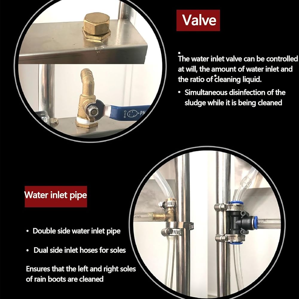 Brush: Built-in 15 water holes. Nylon material, hard and wear-resistant. The three-sided hard brush can effectively clean the sludge on the rain boots.