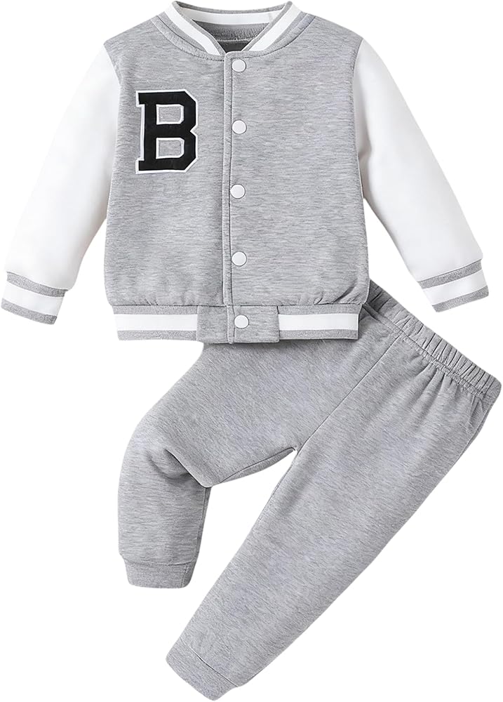 Complete 2-Piece OutfitIncludes a long-sleeve baseball jacket + matching jogger pants—perfect for coordinated style at playdates, family photos, school, or casual daily wear. Mix & match with other pieces for more looks!