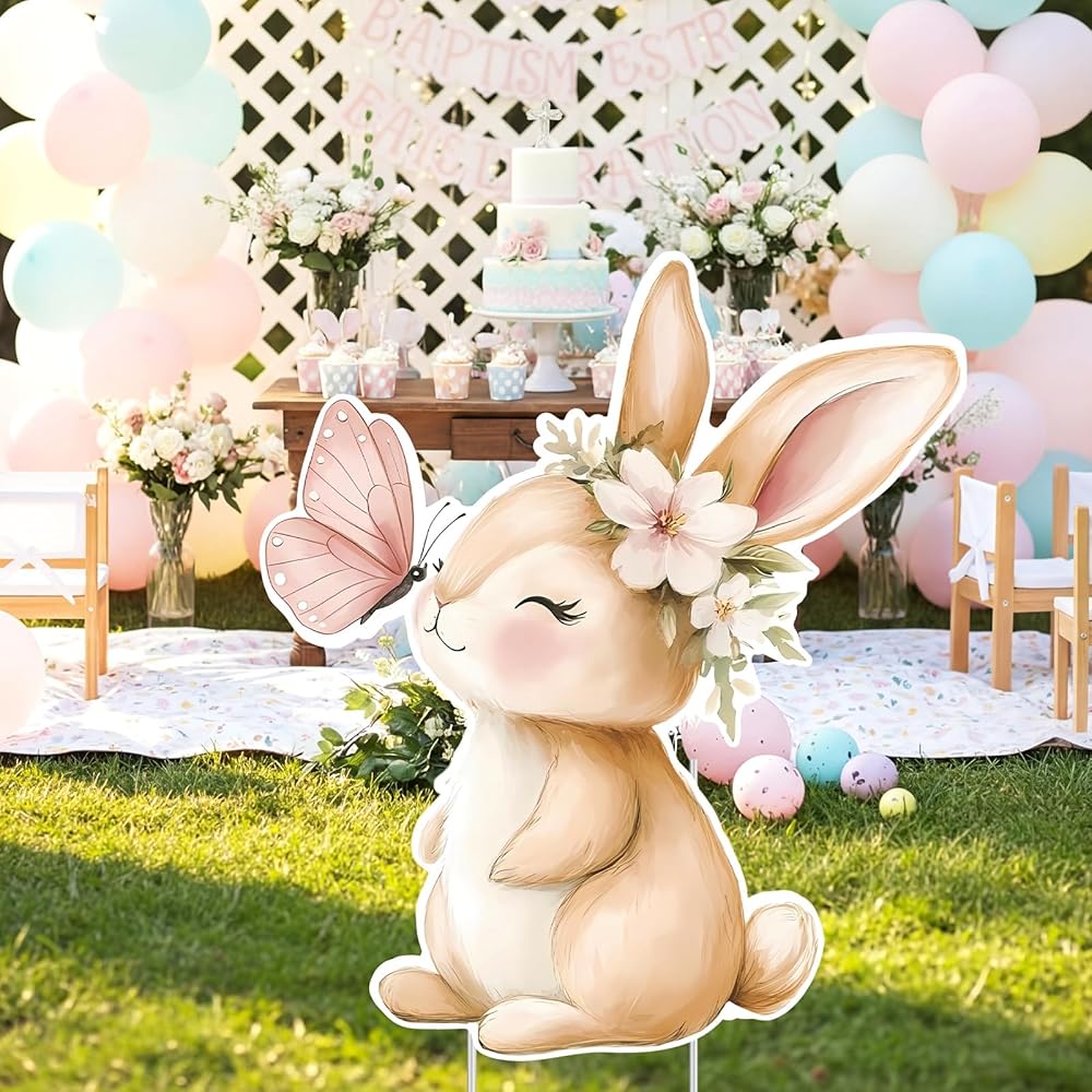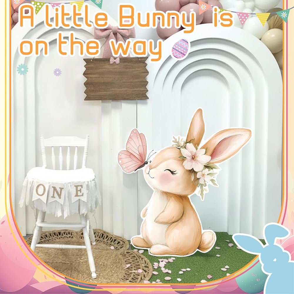 • Size for Display: measuring approximately 28 x 32 inches/ 71.12 x 81.28 cm, the bunny cutout decor is designed for visibility; Its size ensures that it commands attention as a centerpiece or as part of a larger arrangement in a bunny backdrop for baby shower setting