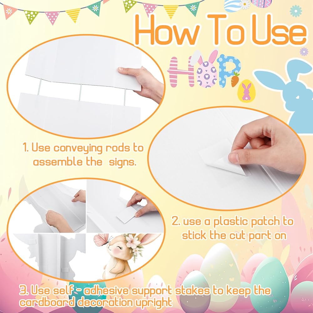 • Cardboard Material: crafted from quality cardboard, these bunny cutout decorations offer durability and longevity; The sturdy construction ensures that the bunny cutout backdrop remains intact, whether for indoor or outdoor events like a rabbit baby shower decor