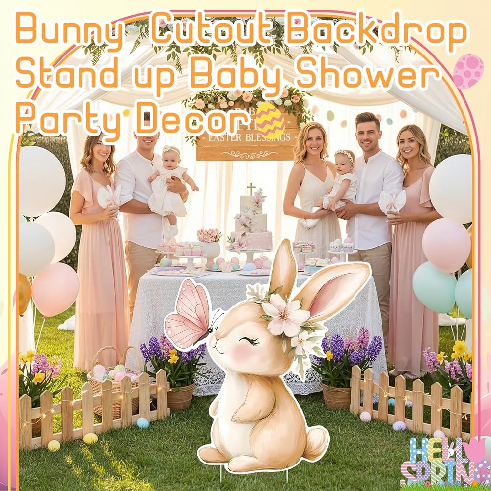 Faccito Bunny Baby Shower Decorations 32 x 28 Inch Spring Easter Bunny Backdrop Cutout Easter Yard Sign with Stakes Outdoor for Birthday Gender Reveal Party Decor