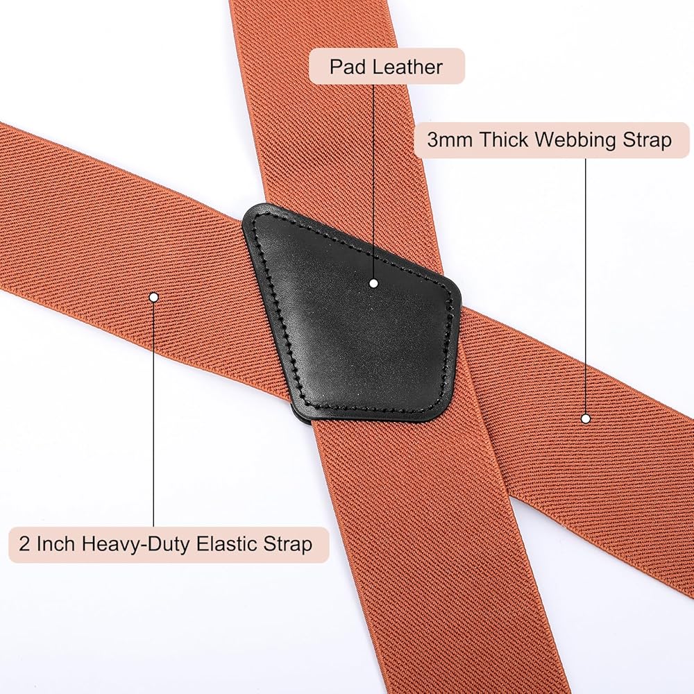 [Durable Material] Crafted with 70% polyester and 30% rubber elastic bands, these work suspenders for men are built to last. Reinforced with webbing straps and a premium leather pad at the intersection, these heavy duty suspenders for men resist wear and tear. The robust construction ensures long-lasting performance, making them reliable suspenders for high-intensity labor or everyday use.