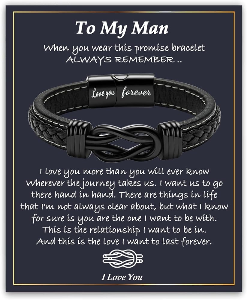 To My Man Valentines Gifts: "A knot tied by the heart, for every bond that matters." This men bracelet features the classic infinity which symbolizing unique connection and eternal love, making it a meaningful gift for your lover on a special day, he will definitely cherish for years to come