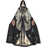 Step into the shadows with this dramatic Gothic hooded cloak by Yuawoi, perfect for bringing the legendary to life. This full-length ceremonial robe features a spacious hood and flowing fabric that creates an imposing silhouette worthy of cryptid folklore. The medium-weight material offers comfortable draping from shoulders to floor, while the drawstring closure ensures a secure fit. Designed to accommodate most adult body types with a loose, flowing style. The wide sleeves and naturally moving fabric enhance its supernatural aesthetic, making it ideal for Halloween parties, cosplay events, Gothic gatherings, and theatrical performances. Whether worn as a standalone piece or as part of an elaborate ensemble, this black cloak commands attention with its mysterious presence.