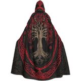 VERSATILE DESIGN: Medieval-style hooded cloak featuring Life of Tree pattern, perfect for Viking, Celtic, Wicca themed events and Halloween celebrations