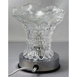 Construction: Glass body, bright metal base with black plastic bottom cover and glass dish