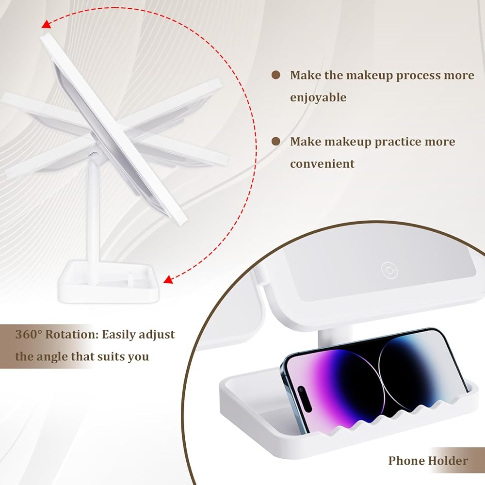Phone Holder Design: The phone holder at the bottom of the makeup mirror is designed to make it easy to follow along with video tutorials by placing your phone while applying makeup. Its foldable design also saves you space for easy storage