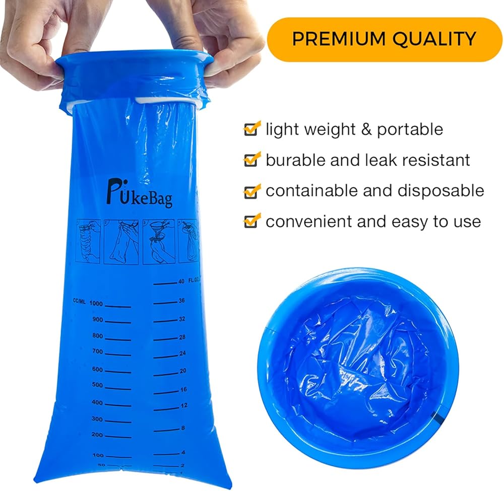 【Convenient & Disposable】Leakproof Vomit Bags for Travel - These emesis bags are disposable and leak-proof, making them perfect for motion sickness, travel, cars, boats, or hospitals. The 40-pack bulk quantity ensures you always have a throw up bag ready when nausea strikes.