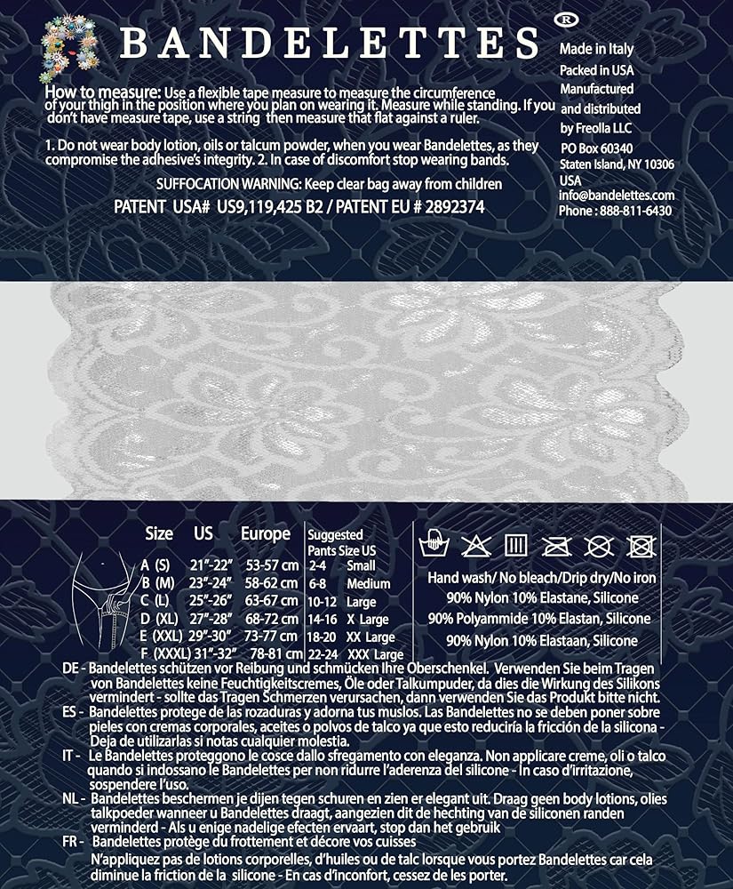 استعيدي حرية التحرك دون قلق أو ألم مع تصميم Bandelettes الحائز على براءة اختراع والذي يوفر بديلاً خفيف الوزن وعصري لاستخدام السراويل القصيرة الكبيرة المضادة للاحتكاك أو الملابس الداخلية المضادة للاحتكاك مع الاستمرار في حل مشكلة الاحتكاك الداخلي للفخذين، والاحتكاك بين الساقين، والاحمرار المؤلم والانزعاج الذي غالبًا ما يأتي معه.