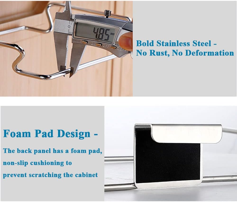【Quality + Innovation】 Made of high-quality (Stainless steel), there is a cushion in the hook to prevent scratching your cabinet door, you can take it off at any time after disposing of the garbage, and it does not take up space for storage.