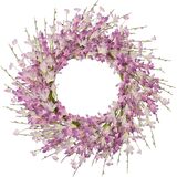 24 Inch Artificial Pink Forsythia Flower Wreath, Silk & Paper Floral Wreaths for Front Door, Romantic Valentine's Day & Spring Summer Decor, All Season Farmhouse Wedding Indoor Outdoor Decor