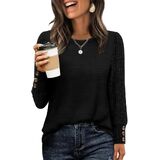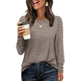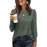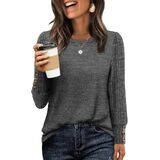 Chic Design with Button Cuffs: Featuring a classic crewneck and stylish ribbed sleeves, this top adds a touch of effortless elegance to your everyday look. The unique and eye-catching button details on the cuffs provide a polished accent, making this piece a standout among fall blouses.