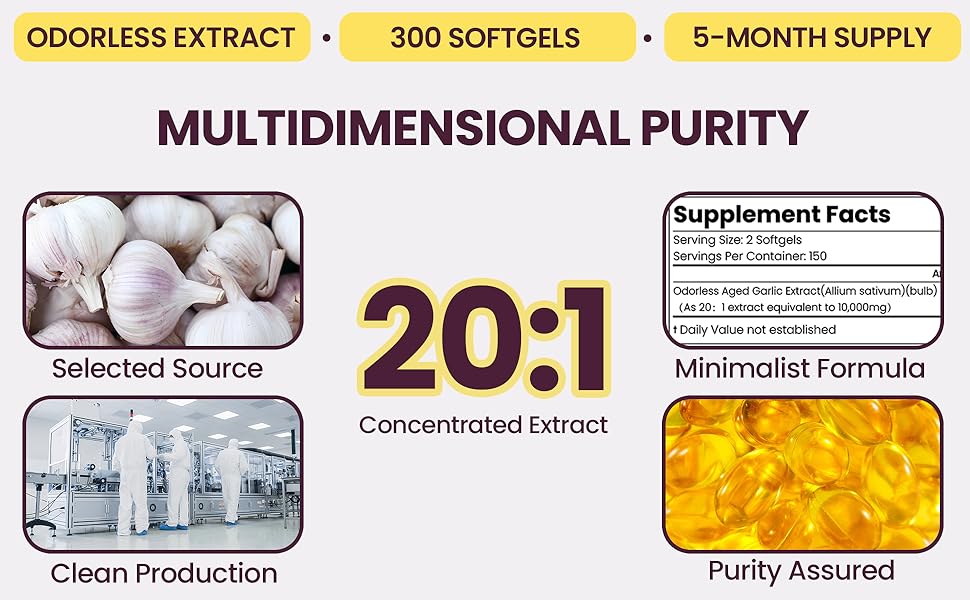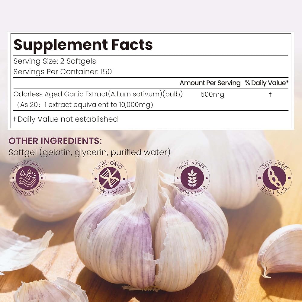 عديم الرائحة ولطيف على المعدة: تمت معالجة كبسولات الثوم الطرية هذه خصيصًا لتكون عديمة الرائحة، مما يزيل المخاوف بشأن رائحة الثوم أو مذاقها. كما أن عملية الشيخوخة الفريدة تجعلها لطيفة على الجهاز الهضمي، ومناسبة للاستخدام اليومي دون إزعاج