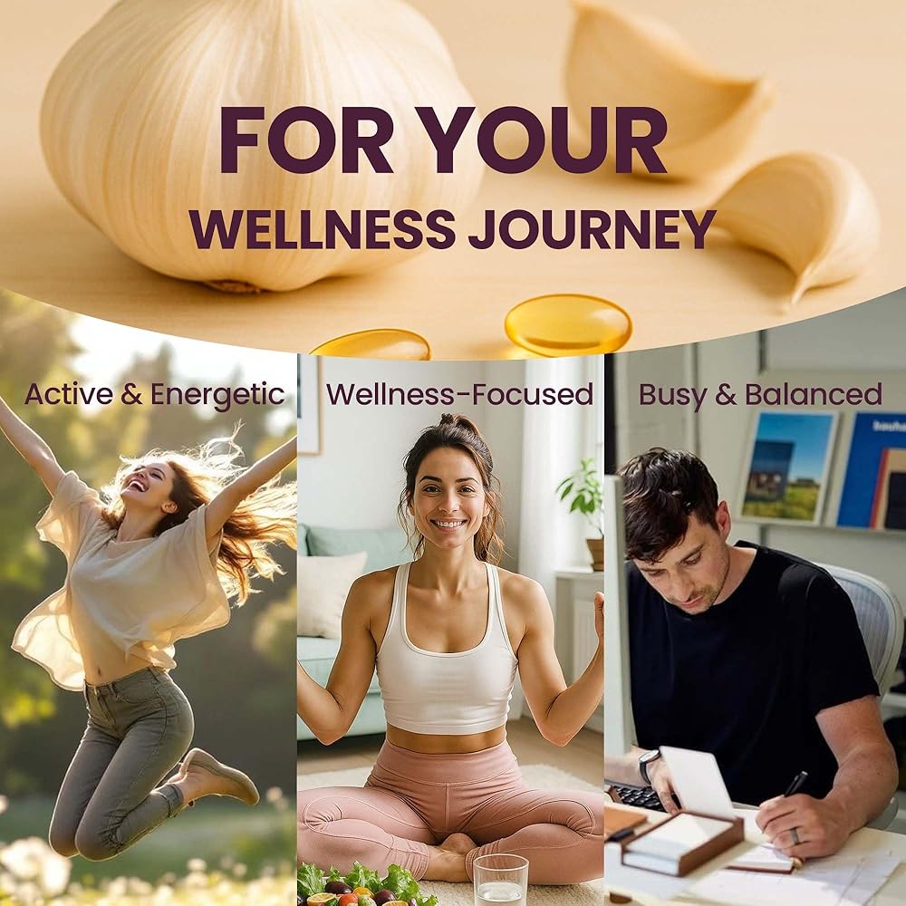 جودة عالية ونقاء مضمون: نحن نعطي الأولوية للنقاء في تركيبتنا. كبسولات زيت الثوم هذه غير معدلة وراثيًا، وخالية من الغلوتين، وخالية من الصويا ومنتجات الألبان. يتم إنتاج كل دفعة في منشأة معتمدة من c-GMP، وتتبع إجراءات مراقبة الجودة الصارمة لضمان معايير عالية