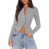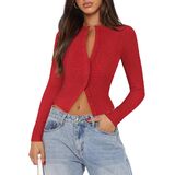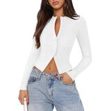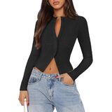 【Features】Ribbed button down shirt is your go to choice for effortless glamour.It features a rounded neckline, long sleeves, solid colors, an front hem split, and a slim fit that hugs your curves. The stylish front button add a chic touch to your everyday look.