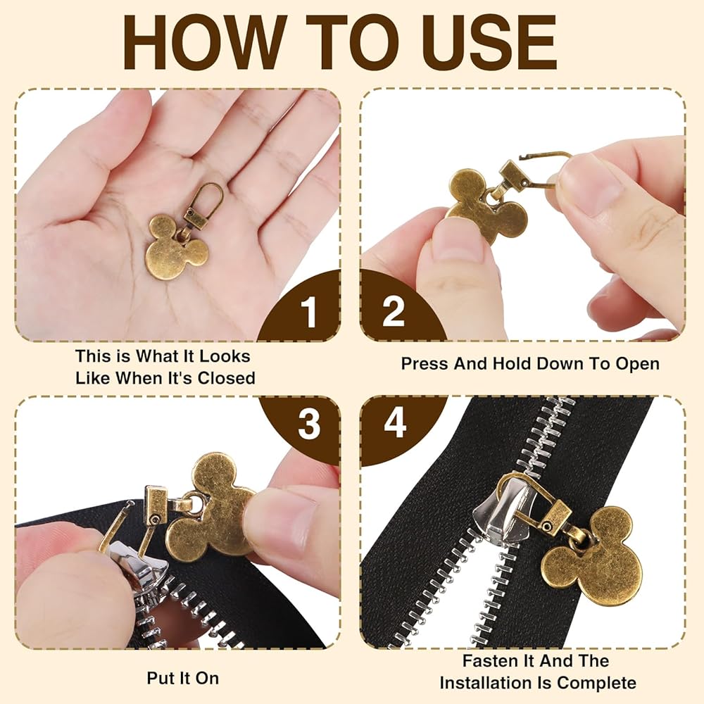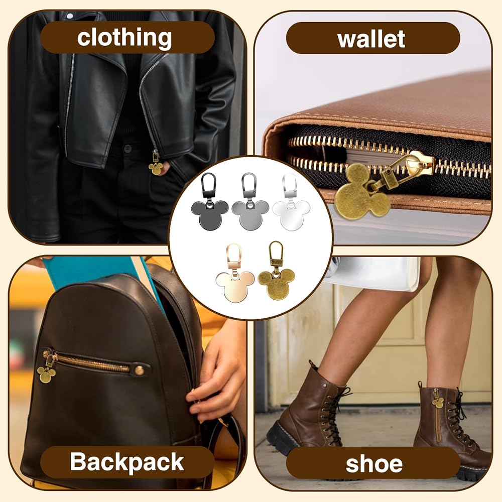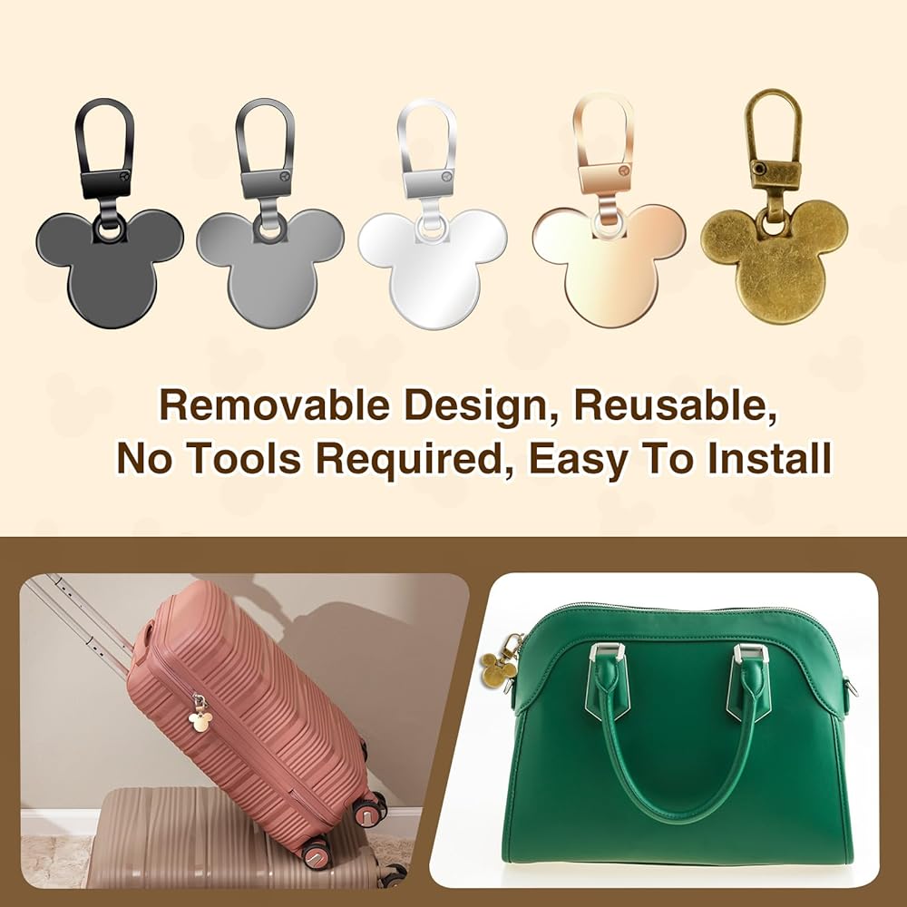 Versatile Cartoon Mouse Design: Charming animal-shaped zipper pulls fit bags, backpacks, luggage & AirPods cases; Mini size (22x26mm) suits keys and purse charms