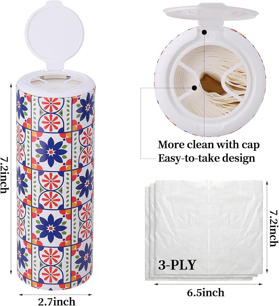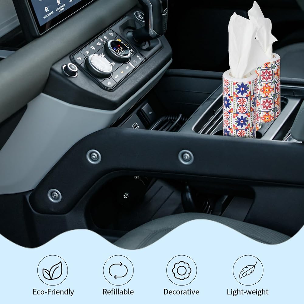 【Compact and Portable】The car tissues cylinder is suitable for most car cup holders and door storage compartments. The dimensions of the car tissue box are 2.6x7.2 inches, and the tissue size is 6.5x7.2 inches, providing convenience for daily commuting without taking up too much space.