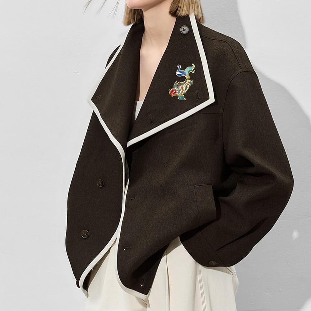 RCWG Lucky Pin, Chinese Koi Fish, Funny Button Pin, Chinese Aesthetic Enamel Lapel Pin for Backpacks, Jackets, Hats, Kids, Girls. Attract Positive Energies Wealth, Health, Luck and Peace