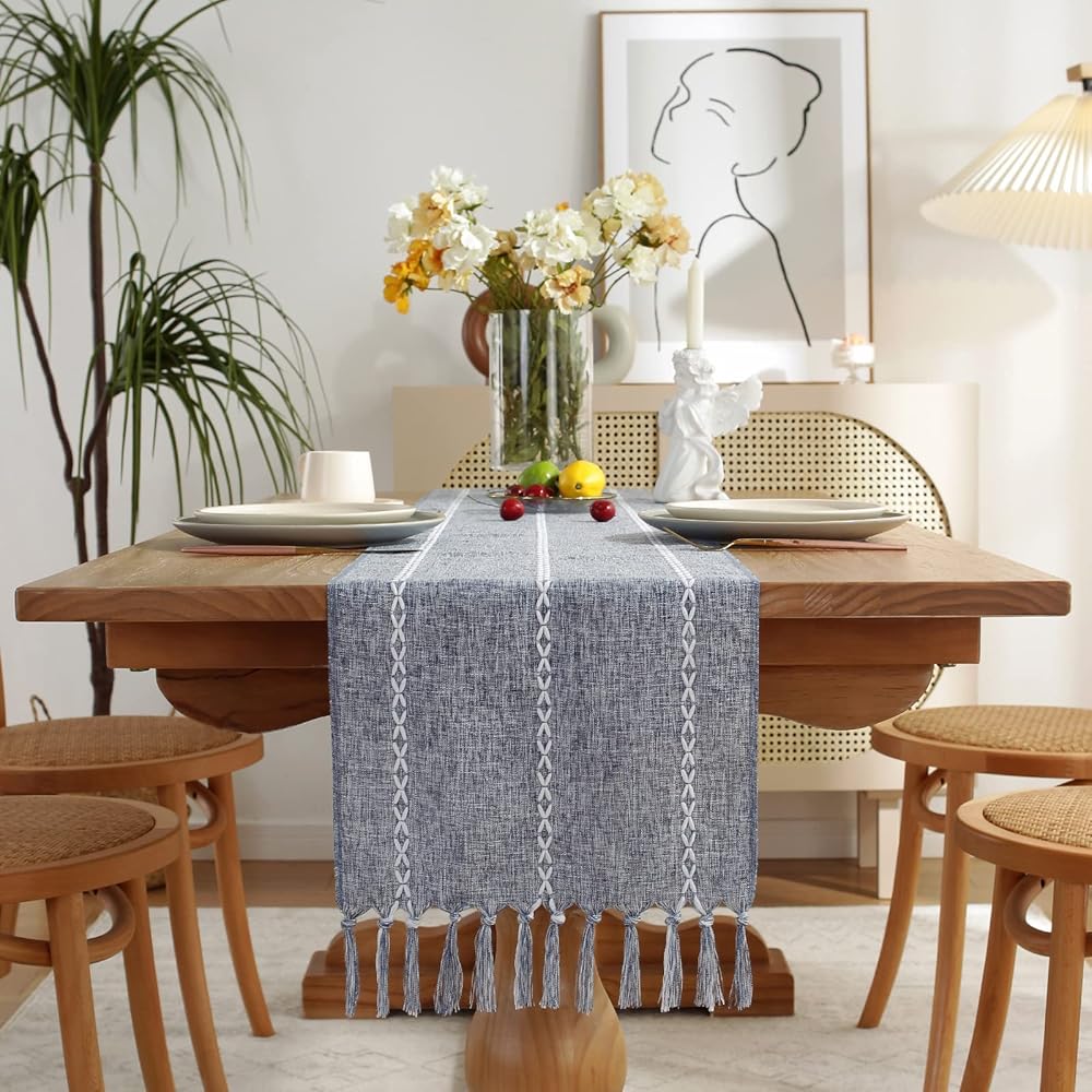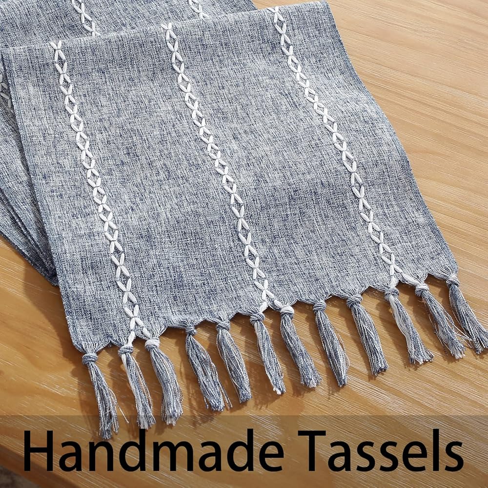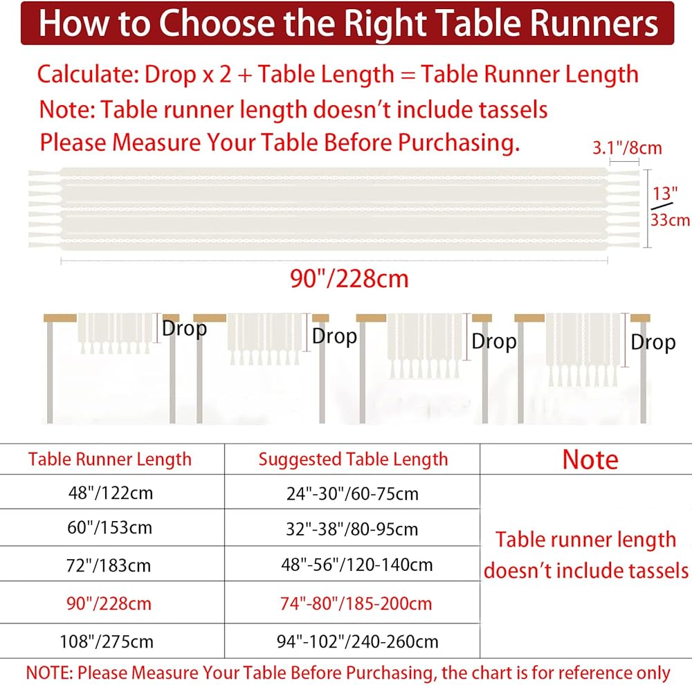 ✔ Size: The dinner table runner measures 13”x72” / 33x183cm (don't include tassels, 1 tassel approximately 8cm), fitting the 120-150cm tables. Hand-cutting and sewing, please allow 1-2cm deviation and color variation. NOTE: Please Measure Your Table Before Purchasing