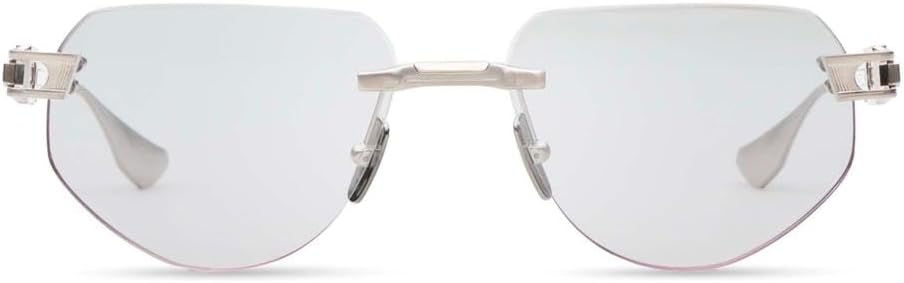 The GRAND-IMPERYN exudes sophistication with its rimless frame design, crafted with a custom titanium 2-piece nose bridge. The design showcases a unique 3-piece titanium hinge plate adorned with intricately pressed line details and elegant enamel inlay. DITA's design ethos is evident in the harmonious blend of colors across different frame options, such as Light Blue to Tan Wash Gradient lenses paired with sapphire enamel temple tips, or Grey Wash to Clear Gradient lenses complemented by black enamel temple tips.