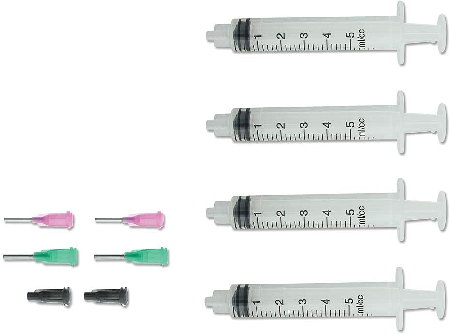 PRECISION TIPS: The applicators are designed for use with a thick glue such as E6000 or similar viscosity adhesives. The tips are ideal for work with small items and applying glue in small spaces. The printed measurements on the syringe allow you to fill up to 5ml/cc, though only filling halfway is recommended.