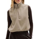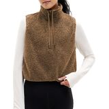 Features: Sherpa Vest Jacket, sleeveless, high-neck design with half-zip closure, cropped length, relaxed fit. Provides all-day warmth and comfort for spring, fall, winter, or chilly days. Features oversized hand pockets with soft brushed fleece lining and a drawstring collar for adjustable fit