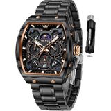 ★Square Men's Wristwatch: Square dial is paired with a metal frame, presenting a simple, fashionable and businesslike look.It features 4 chronograph sub-dials (60 minutes, 60 seconds, 24-hour moon phase, 1/10 second) and date window, meeting your usage needs whether indoors or outdoors.