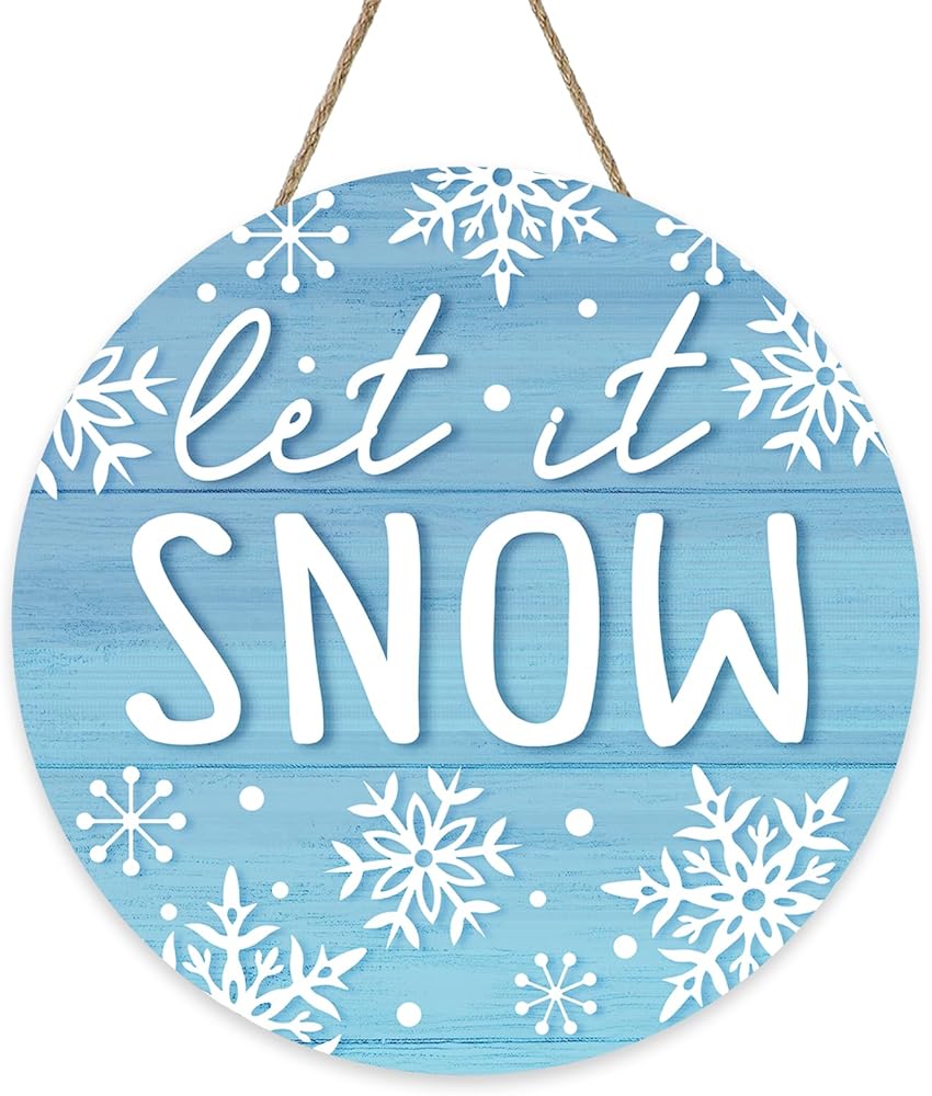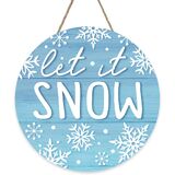 Winter Let It Snow Blue Front Door Sign, Snowflake Wood Hanger Outdoor Outside Porch Home Decor, Farmhouse Rustic Christmas Wooden Wreath Indoor Wall Hanging Decoration