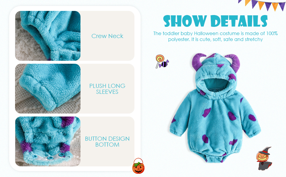 Material: The toddler baby Halloween costume is made of 100% polyester. It is cute, soft, safe, stretchy, fuzzy, warm, comfortable and breathable