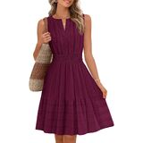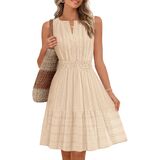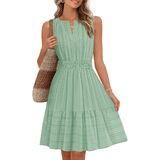 Features: Sleeveless, jacquard textured design, split v-neck, two side pockets, ruffle tired, solid color, swing a line, knee length above, elastic high waist, casual fit, flowy short dress, tank dress, spring summer dresses for women 2026