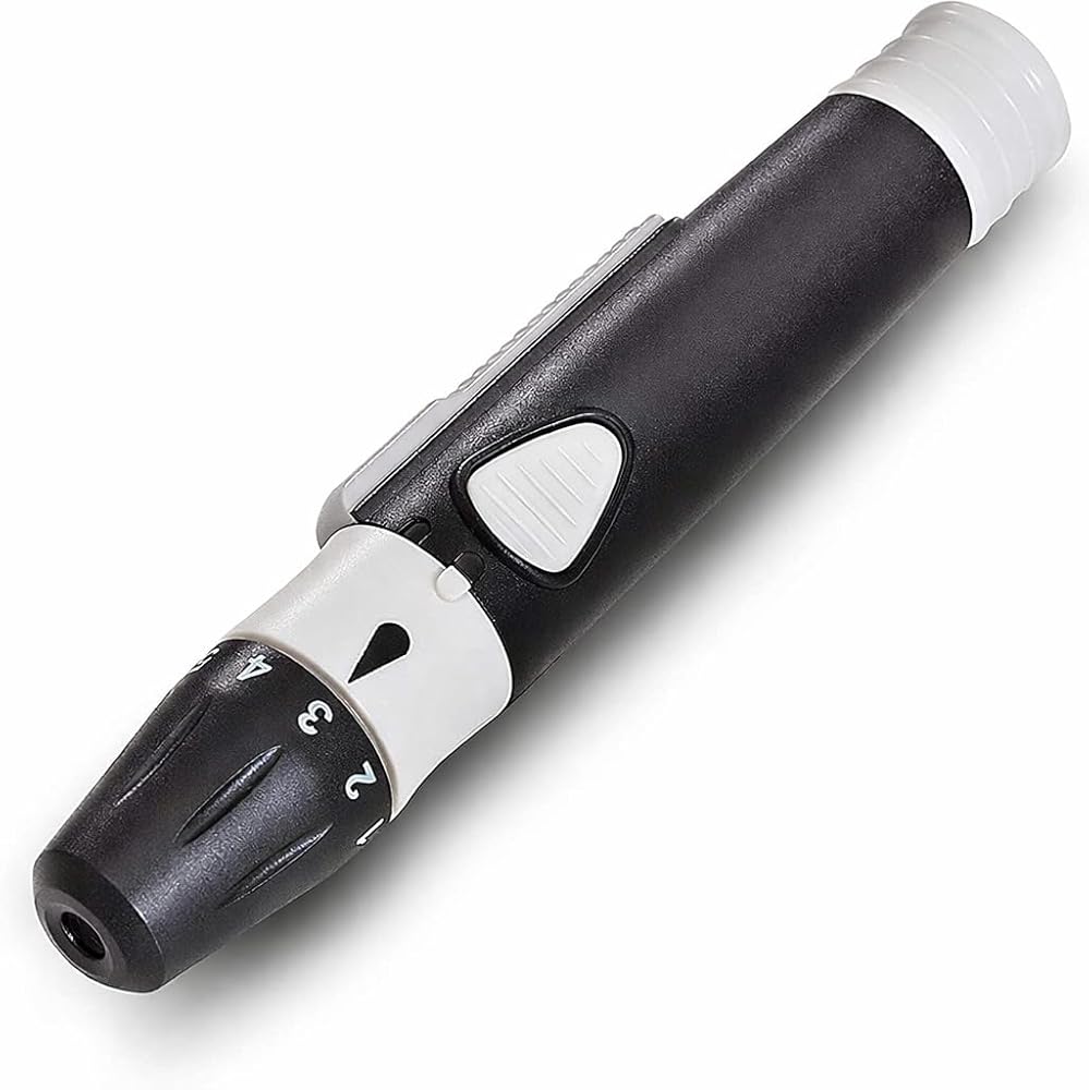 Product Description: The Lancing Device with Ejector is designed for a painless and convenient blood sampling experience. With 5 adjustable depth settings, it ensures a gentle and precise puncture, minimizing discomfort. The one-press ejector allows for easy disposal of used lancets, promoting hygiene and safety. Its versatile design is compatible with most standard lancets, making it a reliable choice for those managing diabetes or other health conditions that require frequent blood testing. This pack includes one lancing device with 5 Lancets, offering a great value for those who need a spare device for backup or travel. Perfect for home glucose monitoring, medical professionals, and caregivers, this device offers ease of use, durability, and reliability—whether at home or on the go. What's Included? 1 Lancing Device (with 5 Free Lancets)