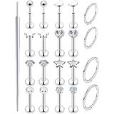 MEASUREMENTS--Lip Rings Studs Gauge Size: 16G (1.2mm); Bar Length: 8mm(5/16 Inch), Top Size:3mm,Hinged Clicker Rings:8mm 10mm,The Different Lenght Made It Easy to Find the Right One for You. Color: Silver-tone.