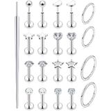 VALUE PACK--One Order Includes 8 Pairs Threadless Lip Rings Studs and 2 Pairs Hinged Clicker Rings,1 Pcs Piercing Taper Needle for Lip.Fashion and Special, The Top Can be Easily Screwed in and Off.