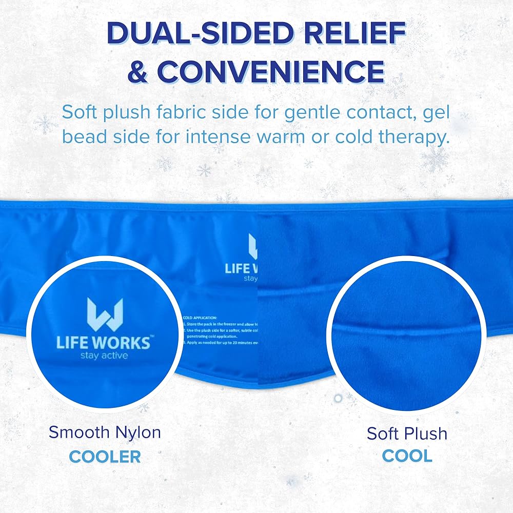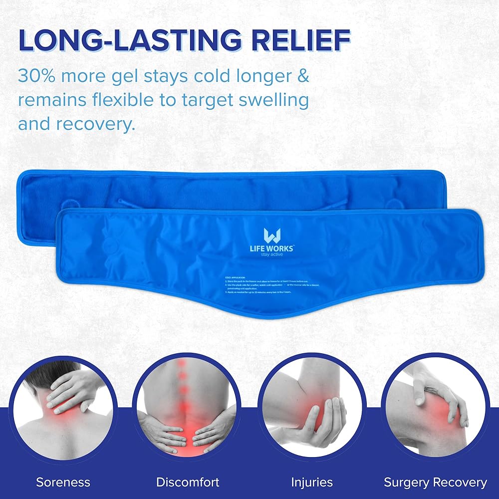 LIFE WORKS Gel-Filled Neck Ice Pack with Soft Plush and Nylon Cover for Dual-Temperature Therapy, Stays Flexible to Soothe Neck, Shoulder, and Back, 23"x8"x5