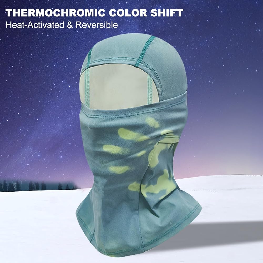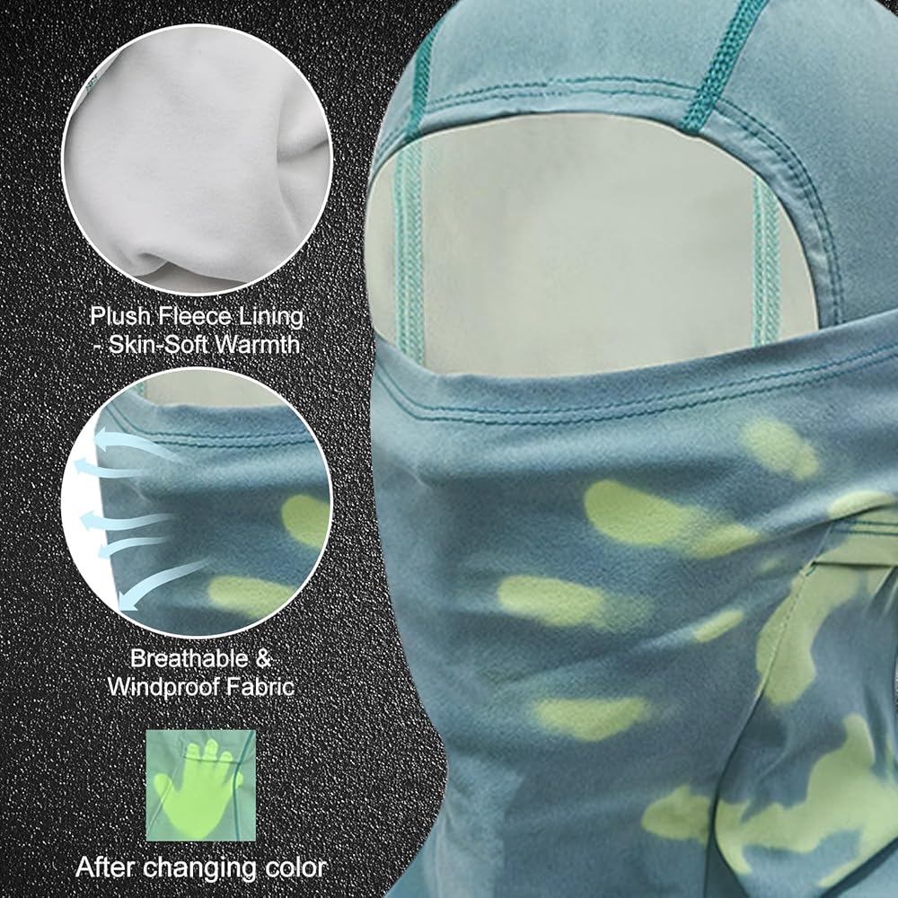 【Vivid Thermochromic Color Shift】 Watch the colors intensify with your vitality! Our advanced temperature-sensitive fabricreacts dynamically to heat. The warmer you get from activity or breath, the more vivid and vibrantthe colors become. This creates a stunning gradient effect that makes your winter cycling, skiing, or runninggear uniquely cool and personalized.