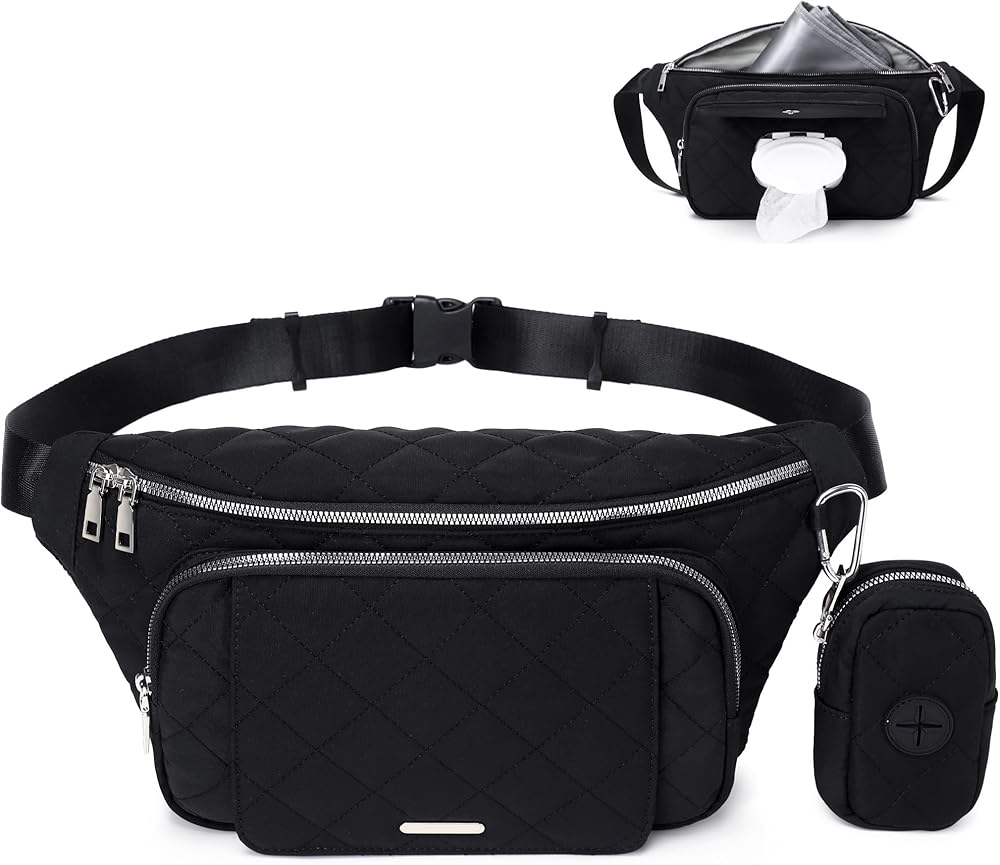 MYHOZEE Small Diaper Bag Fanny Pack - Baby Bag with Waterproof Changing Pad and Wipes Dispenser Quilted Nylon Crossbody Bags for Mom Baby Compact Diaper Purse Cross Body Purses