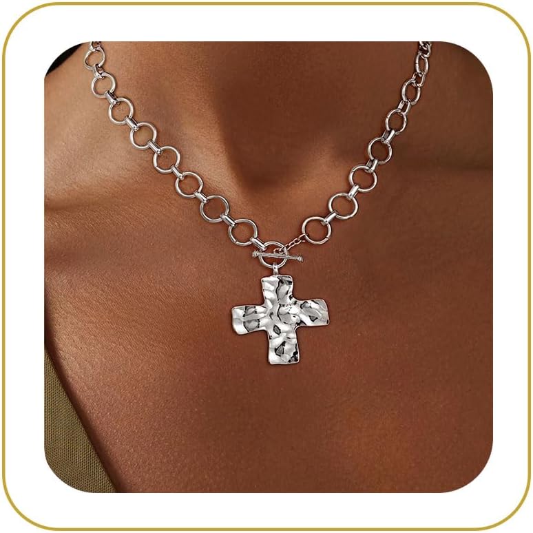 🌟 Bold Statement Necklace 🌟 Designed as a cross pendant necklace, it shines beautifully when worn solo as a statement necklace for a modern trendy charm necklace