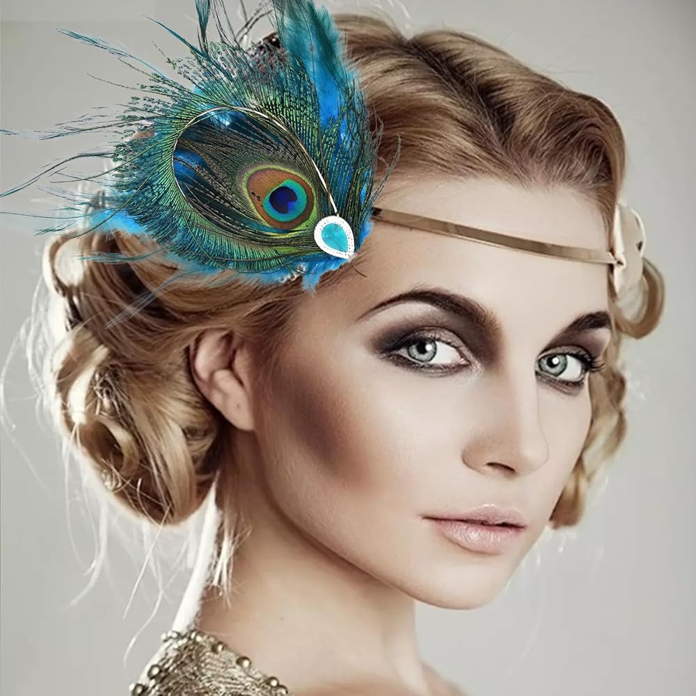 Enhance your Halloween vintage look with our Peacock Feather Hair Clip, a stunning accessory designed for women who appreciate elegance and style in their outfits