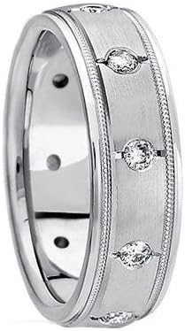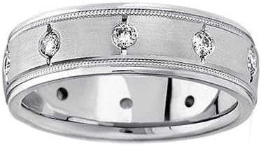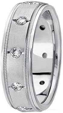 There round brilliant cut diamonds with a total weight of 1.00 carat all with precisely matched white G color and sparkling clean to the eye SI1 clarity. Set in a bezel set along the top of this platinum ring we craft this comfort fit band in your exact finger size. Don't hesitate to call us with your questions, we are waiting for your call.