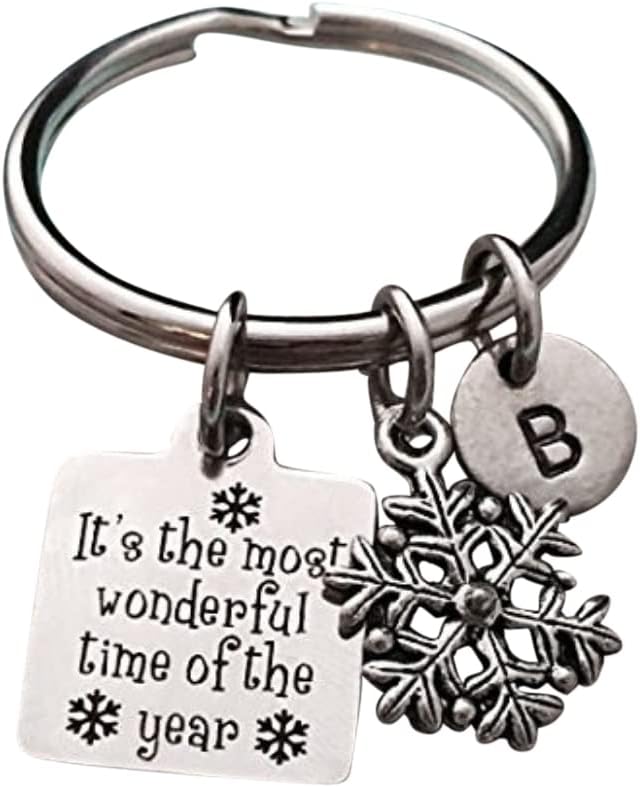 Christmas charm keychain with hand stamped initial *Initial charm is antique silver pewter 9mm *Christmas charm is antique silver pewter *Your purchase will arrive packaged in a cute gift box and I will include a message by request.