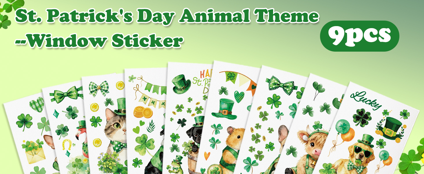 Package Contents: 9 sheets of St Patricks Day window clings, each about 8×12 inches (20×30 cm), including 100+ animal-themed shamrocks, clovers, dogs, cats, and lucky icons, ideal for st patricks day window clings and St Patty's Day decorations